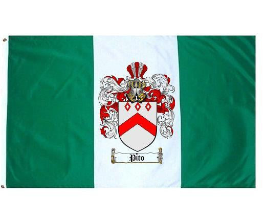 Pito Family Crest Flag / Coat of Arms Flag. You will receive a high quality 3' x 5' Polyester flag with two brass grommets. Proudly display your family heritage with this flag, or hang as a banner on a wall. Our flags make great gifts for birthdays, weddings, anniversaries, fathers day, mothers day, groomsmen gifts, and any other occasion