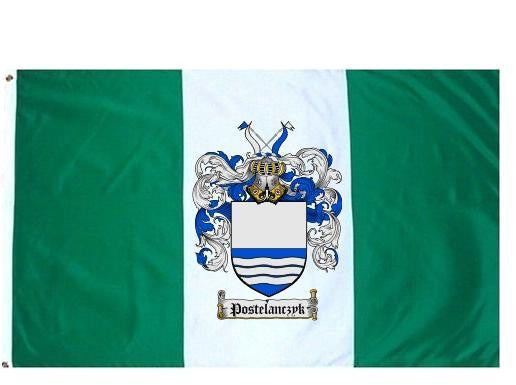 Postelanczyk Family Crest Flag / Coat of Arms Flag. You will receive a high quality 3' x 5' Polyester flag with two brass grommets. Proudly display your family heritage with this flag, or hang as a banner on a wall. Our flags make great gifts for birthdays, weddings, anniversaries, fathers day, mothers day, groomsmen gifts, and any other occasion