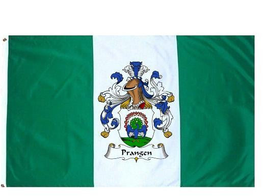 Prangen Family Crest Flag / Coat of Arms Flag. You will receive a high quality 3' x 5' Polyester flag with two brass grommets. Proudly display your family heritage with this flag, or hang as a banner on a wall. Our flags make great gifts for birthdays, weddings, anniversaries, fathers day, mothers day, groomsmen gifts, and any other occasion