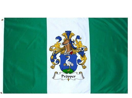 Propper Family Crest Flag / Coat of Arms Flag. You will receive a high quality 3' x 5' Polyester flag with two brass grommets. Proudly display your family heritage with this flag, or hang as a banner on a wall. Our flags make great gifts for birthdays, weddings, anniversaries, fathers day, mothers day, groomsmen gifts, and any other occasion