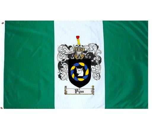 Pym Family Crest Flag / Coat of Arms Flag. You will receive a high quality 3' x 5' Polyester flag with two brass grommets. Proudly display your family heritage with this flag, or hang as a banner on a wall. Our flags make great gifts for birthdays, weddings, anniversaries, fathers day, mothers day, groomsmen gifts, and any other occasion