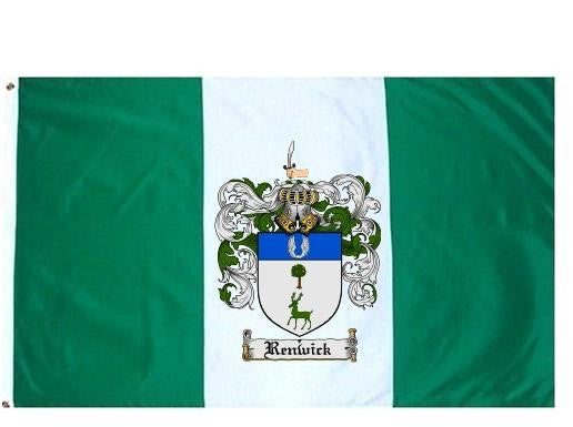 Renwick Family Crest Flag / Coat of Arms Flag. You will receive a high quality 3' x 5' Polyester flag with two brass grommets. Proudly display your family heritage with this flag, or hang as a banner on a wall. Our flags make great gifts for birthdays, weddings, anniversaries, fathers day, mothers day, groomsmen gifts, and any other occasion