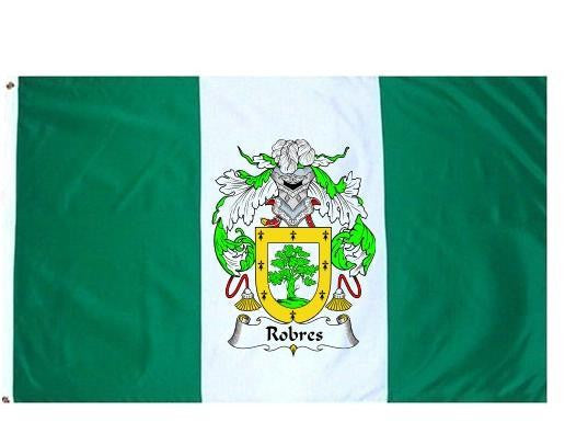 Robres Family Crest Flag / Coat of Arms Flag. You will receive a high quality 3' x 5' Polyester flag with two brass grommets. Proudly display your family heritage with this flag, or hang as a banner on a wall. Our flags make great gifts for birthdays, weddings, anniversaries, fathers day, mothers day, groomsmen gifts, and any other occasion