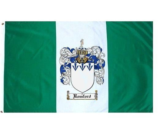 Romford Family Crest Flag / Coat of Arms Flag. You will receive a high quality 3' x 5' Polyester flag with two brass grommets. Proudly display your family heritage with this flag, or hang as a banner on a wall. Our flags make great gifts for birthdays, weddings, anniversaries, fathers day, mothers day, groomsmen gifts, and any other occasion