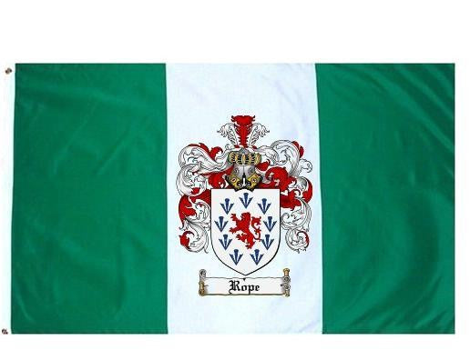 Rope Family Crest Flag / Coat of Arms Flag. You will receive a high quality 3' x 5' Polyester flag with two brass grommets. Proudly display your family heritage with this flag, or hang as a banner on a wall. Our flags make great gifts for birthdays, weddings, anniversaries, fathers day, mothers day, groomsmen gifts, and any other occasion