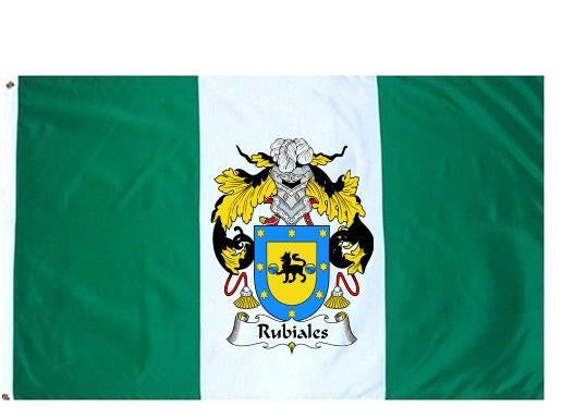 Rubiales Family Crest Flag / Coat of Arms Flag. You will receive a high quality 3' x 5' Polyester flag with two brass grommets. Proudly display your family heritage with this flag, or hang as a banner on a wall. Our flags make great gifts for birthdays, weddings, anniversaries, fathers day, mothers day, groomsmen gifts, and any other occasion