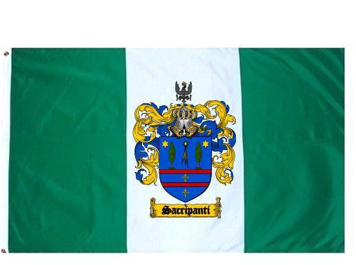 Sacripanti Family Crest Flag / Coat of Arms Flag. You will receive a high quality 3' x 5' Polyester flag with two brass grommets. Proudly display your family heritage with this flag, or hang as a banner on a wall. Our flags make great gifts for birthdays, weddings, anniversaries, fathers day, mothers day, groomsmen gifts, and any other occasion