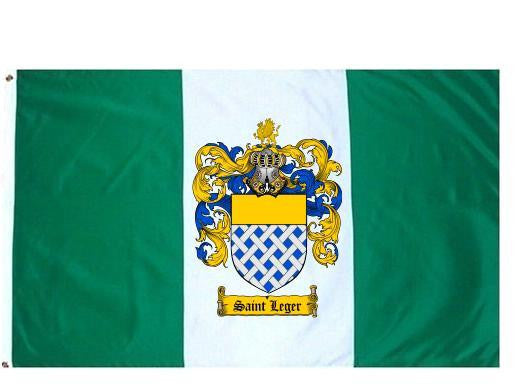 Saintleger Family Crest Flag / Coat of Arms Flag. You will receive a high quality 3' x 5' Polyester flag with two brass grommets. Proudly display your family heritage with this flag, or hang as a banner on a wall. Our flags make great gifts for birthdays, weddings, anniversaries, fathers day, mothers day, groomsmen gifts, and any other occasion