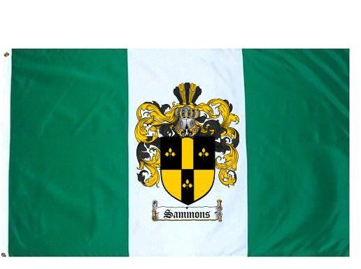 Sammons Family Crest Flag / Coat of Arms Flag. You will receive a high quality 3' x 5' Polyester flag with two brass grommets. Proudly display your family heritage with this flag, or hang as a banner on a wall. Our flags make great gifts for birthdays, weddings, anniversaries, fathers day, mothers day, groomsmen gifts, and any other occasion