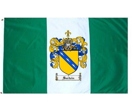 Sartain Family Crest Flag / Coat of Arms Flag. You will receive a high quality 3' x 5' Polyester flag with two brass grommets. Proudly display your family heritage with this flag, or hang as a banner on a wall. Our flags make great gifts for birthdays, weddings, anniversaries, fathers day, mothers day, groomsmen gifts, and any other occasion