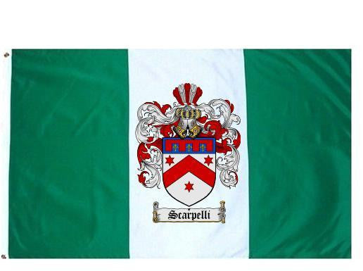 Scarpelli Family Crest Flag / Coat of Arms Flag. You will receive a high quality 3' x 5' Polyester flag with two brass grommets. Proudly display your family heritage with this flag, or hang as a banner on a wall. Our flags make great gifts for birthdays, weddings, anniversaries, fathers day, mothers day, groomsmen gifts, and any other occasion