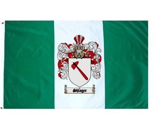 Shlager Family Crest Flag / Coat of Arms Flag. You will receive a high quality 3' x 5' Polyester flag with two brass grommets. Proudly display your family heritage with this flag, or hang as a banner on a wall. Our flags make great gifts for birthdays, weddings, anniversaries, fathers day, mothers day, groomsmen gifts, and any other occasion