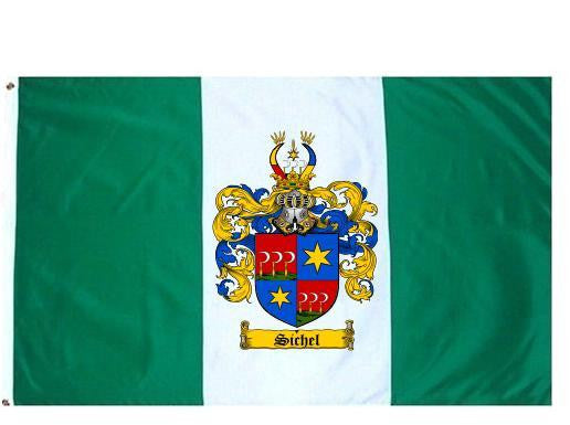 Sichel Family Crest Flag / Coat of Arms Flag. You will receive a high quality 3' x 5' Polyester flag with two brass grommets. Proudly display your family heritage with this flag, or hang as a banner on a wall. Our flags make great gifts for birthdays, weddings, anniversaries, fathers day, mothers day, groomsmen gifts, and any other occasion