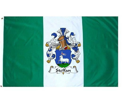Steffan Family Crest Flag / Coat of Arms Flag. You will receive a high quality 3' x 5' Polyester flag with two brass grommets. Proudly display your family heritage with this flag, or hang as a banner on a wall. Our flags make great gifts for birthdays, weddings, anniversaries, fathers day, mothers day, groomsmen gifts, and any other occasion
