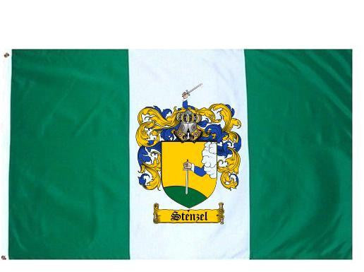 Stenzel Family Crest Flag / Coat of Arms Flag. You will receive a high quality 3' x 5' Polyester flag with two brass grommets. Proudly display your family heritage with this flag, or hang as a banner on a wall. Our flags make great gifts for birthdays, weddings, anniversaries, fathers day, mothers day, groomsmen gifts, and any other occasion