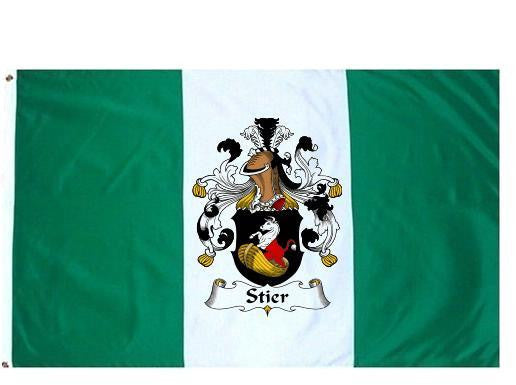 Stier Family Crest Flag / Coat of Arms Flag. You will receive a high quality 3' x 5' Polyester flag with two brass grommets. Proudly display your family heritage with this flag, or hang as a banner on a wall. Our flags make great gifts for birthdays, weddings, anniversaries, fathers day, mothers day, groomsmen gifts, and any other occasion