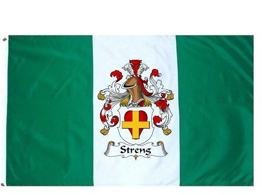 Streng Family Crest Flag / Coat of Arms Flag. You will receive a high quality 3' x 5' Polyester flag with two brass grommets. Proudly display your family heritage with this flag, or hang as a banner on a wall. Our flags make great gifts for birthdays, weddings, anniversaries, fathers day, mothers day, groomsmen gifts, and any other occasion