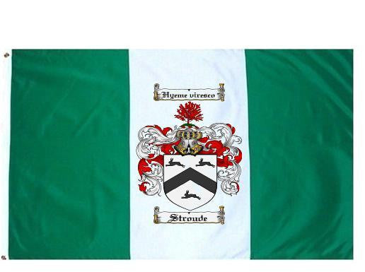 Stroude Family Crest Flag / Coat of Arms Flag. You will receive a high quality 3' x 5' Polyester flag with two brass grommets. Proudly display your family heritage with this flag, or hang as a banner on a wall. Our flags make great gifts for birthdays, weddings, anniversaries, fathers day, mothers day, groomsmen gifts, and any other occasion