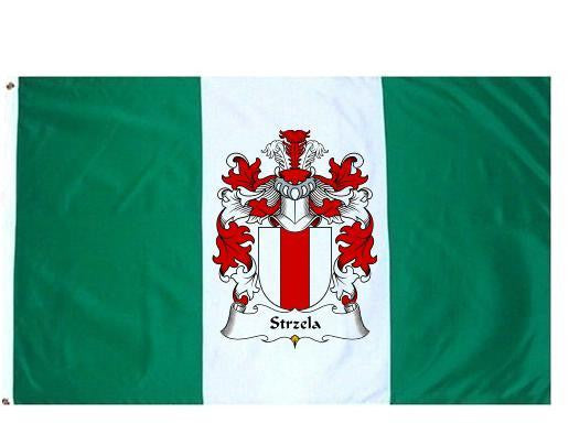 Strzela Family Crest Flag / Coat of Arms Flag. You will receive a high quality 3' x 5' Polyester flag with two brass grommets. Proudly display your family heritage with this flag, or hang as a banner on a wall. Our flags make great gifts for birthdays, weddings, anniversaries, fathers day, mothers day, groomsmen gifts, and any other occasion
