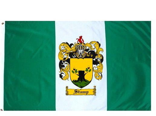 Stump Family Crest Flag / Coat of Arms Flag. You will receive a high quality 3' x 5' Polyester flag with two brass grommets. Proudly display your family heritage with this flag, or hang as a banner on a wall. Our flags make great gifts for birthdays, weddings, anniversaries, fathers day, mothers day, groomsmen gifts, and any other occasion