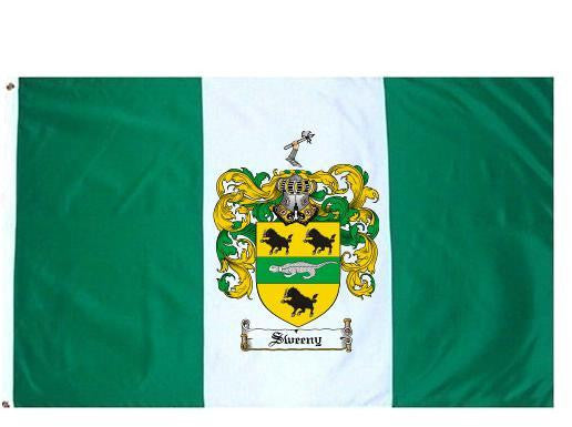 Sweeny Family Crest Flag / Coat of Arms Flag. You will receive a high quality 3' x 5' Polyester flag with two brass grommets. Proudly display your family heritage with this flag, or hang as a banner on a wall. Our flags make great gifts for birthdays, weddings, anniversaries, fathers day, mothers day, groomsmen gifts, and any other occasion