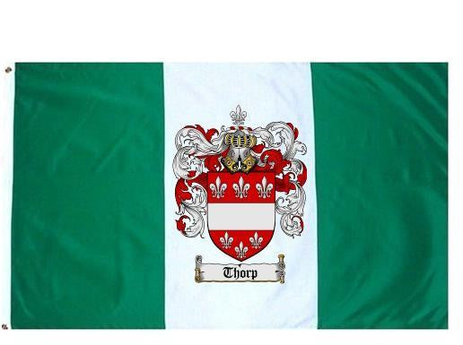 Thorp Family Crest Flag / Coat of Arms Flag. You will receive a high quality 3' x 5' Polyester flag with two brass grommets. Proudly display your family heritage with this flag, or hang as a banner on a wall. Our flags make great gifts for birthdays, weddings, anniversaries, fathers day, mothers day, groomsmen gifts, and any other occasion