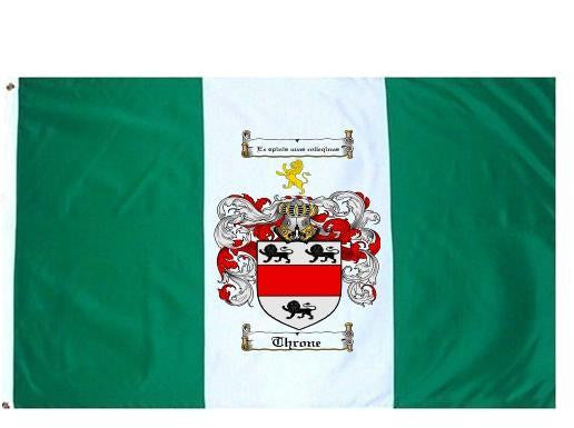 Throne Family Crest Flag / Coat of Arms Flag. You will receive a high quality 3' x 5' Polyester flag with two brass grommets. Proudly display your family heritage with this flag, or hang as a banner on a wall. Our flags make great gifts for birthdays, weddings, anniversaries, fathers day, mothers day, groomsmen gifts, and any other occasion