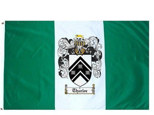 Thurloe Family Crest Flag / Coat of Arms Flag. You will receive a high quality 3' x 5' Polyester flag with two brass grommets. Proudly display your family heritage with this flag, or hang as a banner on a wall. Our flags make great gifts for birthdays, weddings, anniversaries, fathers day, mothers day, groomsmen gifts, and any other occasion