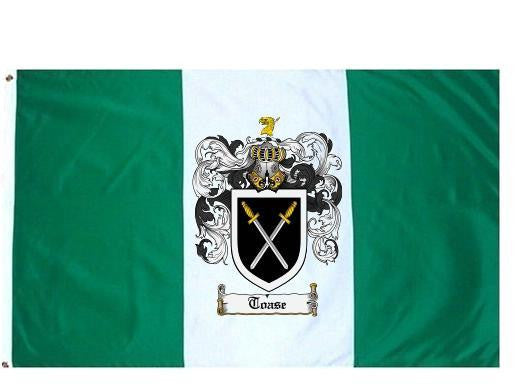Toase Family Crest Flag / Coat of Arms Flag. You will receive a high quality 3' x 5' Polyester flag with two brass grommets. Proudly display your family heritage with this flag, or hang as a banner on a wall. Our flags make great gifts for birthdays, weddings, anniversaries, fathers day, mothers day, groomsmen gifts, and any other occasion