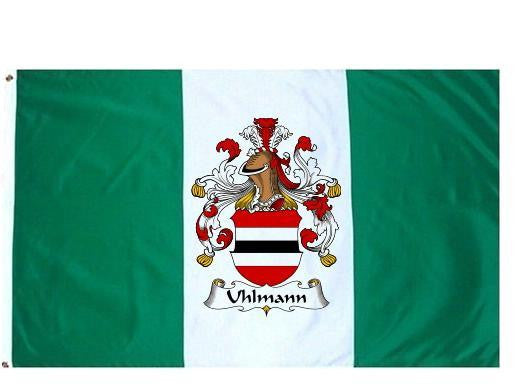Uhlmann Family Crest Flag / Coat of Arms Flag. You will receive a high quality 3' x 5' Polyester flag with two brass grommets. Proudly display your family heritage with this flag, or hang as a banner on a wall. Our flags make great gifts for birthdays, weddings, anniversaries, fathers day, mothers day, groomsmen gifts, and any other occasion