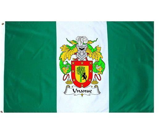 Unanue Family Crest Flag / Coat of Arms Flag. You will receive a high quality 3' x 5' Polyester flag with two brass grommets. Proudly display your family heritage with this flag, or hang as a banner on a wall. Our flags make great gifts for birthdays, weddings, anniversaries, fathers day, mothers day, groomsmen gifts, and any other occasion