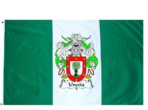 Unceta Family Crest Flag / Coat of Arms Flag. You will receive a high quality 3' x 5' Polyester flag with two brass grommets. Proudly display your family heritage with this flag, or hang as a banner on a wall. Our flags make great gifts for birthdays, weddings, anniversaries, fathers day, mothers day, groomsmen gifts, and any other occasion