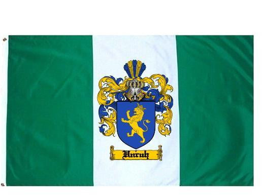 Unruh Family Crest Flag / Coat of Arms Flag. You will receive a high quality 3' x 5' Polyester flag with two brass grommets. Proudly display your family heritage with this flag, or hang as a banner on a wall. Our flags make great gifts for birthdays, weddings, anniversaries, fathers day, mothers day, groomsmen gifts, and any other occasion