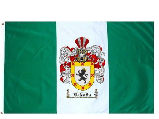 Valentin Family Crest Flag / Coat of Arms Flag. You will receive a high quality 3' x 5' Polyester flag with two brass grommets. Proudly display your family heritage with this flag, or hang as a banner on a wall. Our flags make great gifts for birthdays, weddings, anniversaries, fathers day, mothers day, groomsmen gifts, and any other occasion