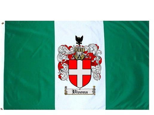 Vivona Family Crest Flag / Coat of Arms Flag. You will receive a high quality 3' x 5' Polyester flag with two brass grommets. Proudly display your family heritage with this flag, or hang as a banner on a wall. Our flags make great gifts for birthdays, weddings, anniversaries, fathers day, mothers day, groomsmen gifts, and any other occasion
