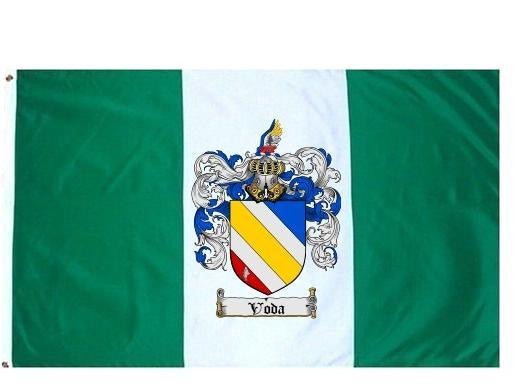 Voda Family Crest Flag / Coat of Arms Flag. You will receive a high quality 3' x 5' Polyester flag with two brass grommets. Proudly display your family heritage with this flag, or hang as a banner on a wall. Our flags make great gifts for birthdays, weddings, anniversaries, fathers day, mothers day, groomsmen gifts, and any other occasion