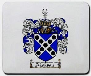 Akokson Coat of Arms / Family Crest Mouse Pad. Your Family Coat of Arms printed in full color on a high quality Mouse mat.