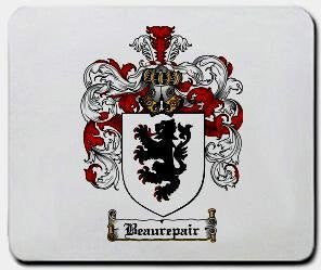 Beaurepair Coat of Arms / Family Crest Mouse Pad. Your Family Coat of Arms printed in full color on a high quality Mouse mat.