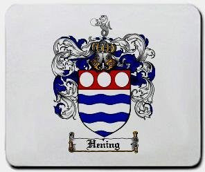 Hening Coat of Arms / Family Crest Mouse Pad. Your Family Coat of Arms printed in full color on a high quality Mouse mat.