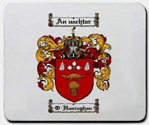 O'hanraghan Coat of Arms / Family Crest Mouse Pad. Your Family Coat of Arms printed in full color on a high quality Mouse mat.