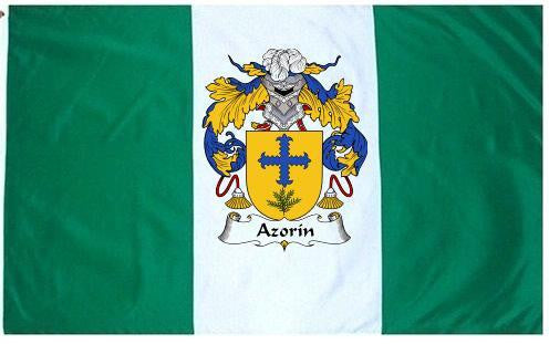 Azorin Family Crest Flag / Coat of Arms Flag. You will receive a high quality 3' x 5' Polyester flag with two brass grommets. Proudly display your family heritage with this flag, or hang as a banner on a wall. Our flags make great gifts for birthdays, weddings, anniversaries, fathers day, mothers day, groomsmen gifts, and any other occasion