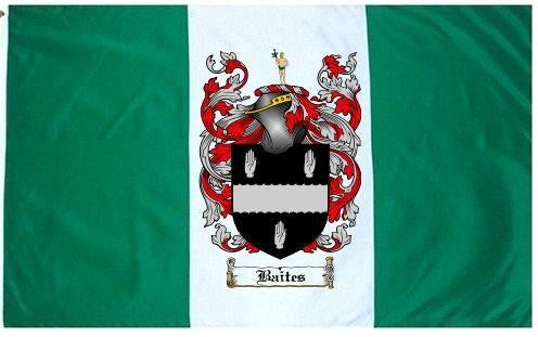 Baites Family Crest Flag / Coat of Arms Flag. You will receive a high quality 3' x 5' Polyester flag with two brass grommets. Proudly display your family heritage with this flag, or hang as a banner on a wall. Our flags make great gifts for birthdays, weddings, anniversaries, fathers day, mothers day, groomsmen gifts, and any other occasion