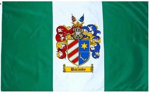 Barandy Family Crest Flag / Coat of Arms Flag. You will receive a high quality 3' x 5' Polyester flag with two brass grommets. Proudly display your family heritage with this flag, or hang as a banner on a wall. Our flags make great gifts for birthdays, weddings, anniversaries, fathers day, mothers day, groomsmen gifts, and any other occasion