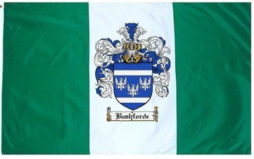 Bashforde Family Crest Flag / Coat of Arms Flag. You will receive a high quality 3' x 5' Polyester flag with two brass grommets. Proudly display your family heritage with this flag, or hang as a banner on a wall. Our flags make great gifts for birthdays, weddings, anniversaries, fathers day, mothers day, groomsmen gifts, and any other occasion