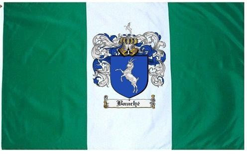 Bauche Family Crest Flag / Coat of Arms Flag. You will receive a high quality 3' x 5' Polyester flag with two brass grommets. Proudly display your family heritage with this flag, or hang as a banner on a wall. Our flags make great gifts for birthdays, weddings, anniversaries, fathers day, mothers day, groomsmen gifts, and any other occasion