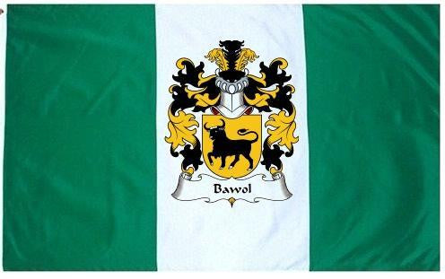Bawol Family Crest Flag / Coat of Arms Flag. You will receive a high quality 3' x 5' Polyester flag with two brass grommets. Proudly display your family heritage with this flag, or hang as a banner on a wall. Our flags make great gifts for birthdays, weddings, anniversaries, fathers day, mothers day, groomsmen gifts, and any other occasion