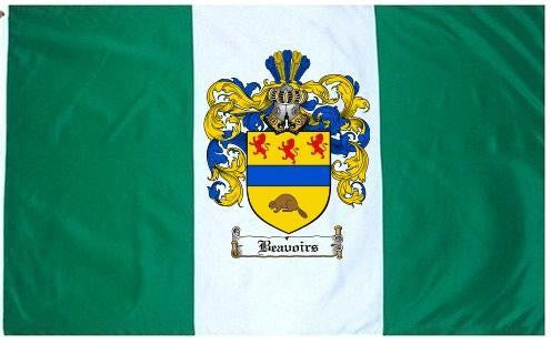 Beavoirs Family Crest Flag / Coat of Arms Flag. You will receive a high quality 3' x 5' Polyester flag with two brass grommets. Proudly display your family heritage with this flag, or hang as a banner on a wall. Our flags make great gifts for birthdays, weddings, anniversaries, fathers day, mothers day, groomsmen gifts, and any other occasion