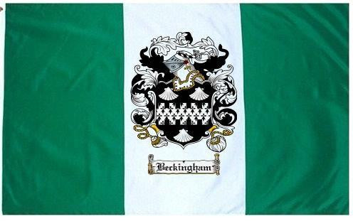 Beckingham Family Crest Flag / Coat of Arms Flag. You will receive a high quality 3' x 5' Polyester flag with two brass grommets. Proudly display your family heritage with this flag, or hang as a banner on a wall. Our flags make great gifts for birthdays, weddings, anniversaries, fathers day, mothers day, groomsmen gifts, and any other occasion