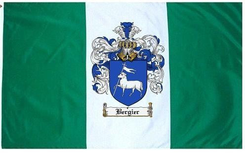 Bergier Family Crest Flag / Coat of Arms Flag. You will receive a high quality 3' x 5' Polyester flag with two brass grommets. Proudly display your family heritage with this flag, or hang as a banner on a wall. Our flags make great gifts for birthdays, weddings, anniversaries, fathers day, mothers day, groomsmen gifts, and any other occasion