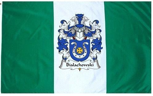 Bialachowski Family Crest Flag / Coat of Arms Flag. You will receive a high quality 3' x 5' Polyester flag with two brass grommets. Proudly display your family heritage with this flag, or hang as a banner on a wall. Our flags make great gifts for birthdays, weddings, anniversaries, fathers day, mothers day, groomsmen gifts, and any other occasion